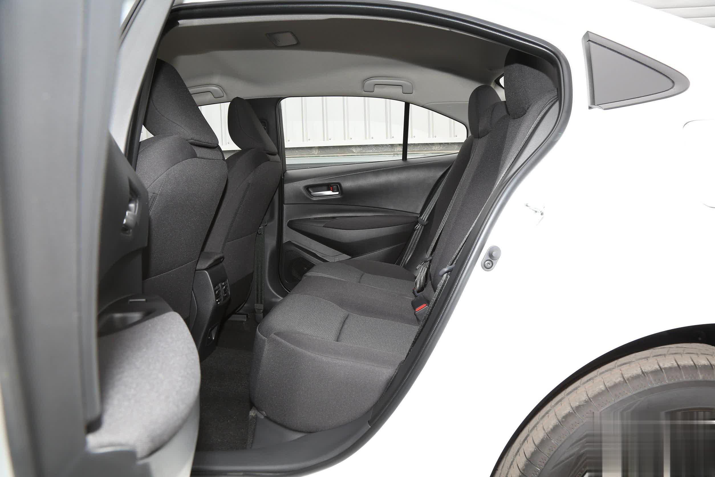 雷凌的空间表现放在同级别中算是一般,身高1.75米的体验者在前排调整好坐姿,再进入到后排,此时腿部空间还行,但头顶基本上没有多少余量,并排坐满3人,横向空间也有点拥挤,而座椅厚实,对身体的承托还不错。